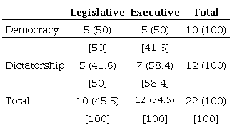 Of the 22 amendments, the Executive was the author of 54,5%. In the dictatorial regime this participation was even greater, remembering that during the dictatorial regime, the control ofABSTRACT constitutionality was the exclusive authorship of the Attorney General, who was the exclusive and free nomination of the President of the Republic, having this total control over theABSTRACT review. This shows that not only the Legislative, but mainly the Executive had a lot of interest and initiative to increase the prerogatives of the Judiciary.