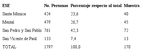 El tamaño de muestra para cada ESE, con asignación proporcional al número de personas atendidas (afijación proporcional).