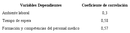 El "tiempo de espera" y la "formación y competencia del personal médico", son las variables que mejor explican la calidad en la prestación de los servicios de urgencias, del lado de la oferta; y la variable independiente que menos explica la calidad en la prestación de los servicios de urgencias, es el ambiente laboral.