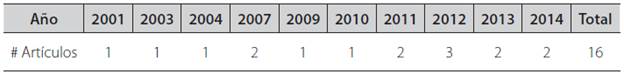 Tipo de documentos revisados: artículos derivados de investigación, informes de investigación, libros y tesis.