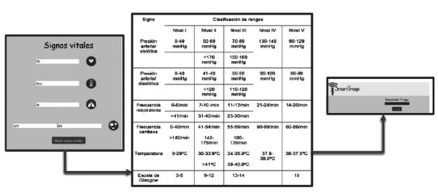 Todo lo anterior motivó la investigación y puesta en marcha de este proyecto el cual está enfocado en la optimización del triaje. El sistema está compuesto por la implementación de un módulo de instrumentación que permite medir los signos vitales (temperatura, tensión arterial, frecuencia cardiaca y frecuencia respiratoria) por medio de elementos electrónicos, que en conjunto se encargan de adquirir bioseñales que son procesadas, para luego enviarlas al software de interfaz gráfica que toma dichas mediciones y realiza de manera automática el proceso de gradación de triaje basado en sus cinco 5 categorías. Una vez que los pacientes ingresen al SUH, este será atendido según el resultado arrojado y su necesidad de intervención si el médico así lo dispone.