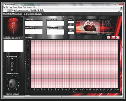 El funcionamiento del software comienza con el proceso de adquisición de datos en el VI (instrumento virtual) o VISA (del inglés Virtual Instrument Software Architecture) serial de Labview, el cual permite configurar los parámetros como baudios de transmisión, bits de datos, paridad y control de flujo que harán que el proceso de adquisición de datos sea correcto. Luego de realizada la adquisición de datos se hace la representación gráfica de las señales cardíacas para someterlas a un proceso de filtrado que favorecerá la visualización óptima de la señal.