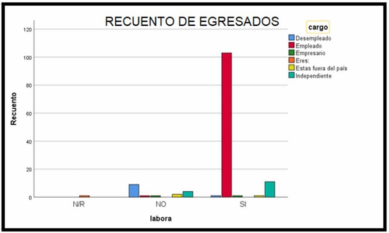 Results: It can be seen that out of a total of 135 graduates, 117 corresponding to 86 % of the population stated that they are working as therapists Currently respiratory, only 6,6 % (9 people) report being unemployed and the rest register occupations such as independent, entrepreneurs and working outside the country.