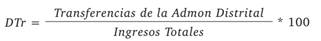 Dónde un nivel cercano a 100%, indica que los Fondos de Desarrollo Local (FDL) tiene una mayor dependencia de las transferencias de la Administración Central para la ejecución de los proyectos y metas propuestos en los objetivos estructurales en el Plan de Desarrollo de cada localidad.