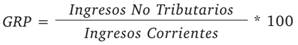 Relaciona la generación de los recursos propios, es decir el peso relativo de los ingresos no tributarios13 en el total de los ingresos corrientes. De igual manera ayuda a valorar el esfuerzo que hace las localidades para generar rentas propias (multas, arriendos, fotocopias entre otros) que contribuyen para al financiamiento del gasto.