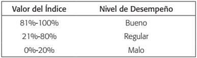 La figura 1 resume los índices utilizados para calcular el Índice de Desempeño Integral.