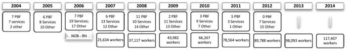 Regarding services, it is first important to stress the legacy: their history was marked by the fragmentation of supply according to government levels,12 types of actions and suppliers, and the lack of regulation effectively determining the role of each federal entity in the provision of services and in the execution of policy. This legacy speaks to the challenge faced when assembling a system and to the very conception of political management that results in unity in the scope of protection (Dutra, 2014).