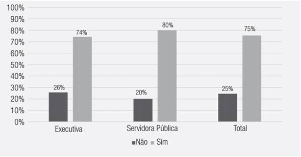 Os dados ressaltam que tanto as executivas como as servidoras públicas estão muito mais empoderadas financeiramente quando comparadas com seus pares amorosos, homens. Isso reforça a literatura no tocante ao empoderamento da mulher profissional em relação ao parceiro amoroso. É importante salientar que, mesmo empoderadas financeiramente, elas não conseguem sair do papel social imposto pela dominação masculina.