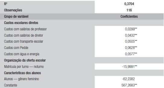 O uso de custos escolares diretos nas análises apresenta indícios de que não necessariamente alocação de mais recursos financeiros em unidades de ensino, geridas pelo estado, configura melhores desempenhos escolares no Enem. Ou seja, os resultados sugerem não bastar que a escola tenha recursos, ela precisa mobilizá-los de maneira planejada, adequada e com propósito claro.