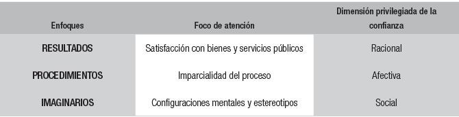 En la tabla 1 se sistematizan estos tres enfoques y su correspondencia con las dimensiones de la confianza.