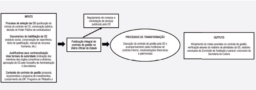 É possível verificar essa problematização na experiência com OS, principalmente no Estado de São Paulo, que tem a experiência mais consolidada na contratualização com OS no Brasil, sobretudo nas áreas de saúde e cultura. A contratualização na área da cultura começou em 2004 e vem intensificando-se, tendo como instrumento norteador um contrato de gestão com metas e resultados.