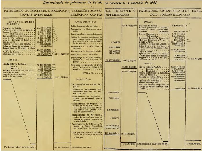 For the first time, the Treasury of the State of São Paulo presents its statement of financial position - complete and organized according to the standards modernly recommended by the public sector accounting scholars (Lins, 1905, p. 171).