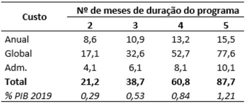 É importante destacar que estes valores consideram a hipótese de que todas as empresas qualificáveis para o programa irão fazer uso dele, o que não deve corresponder à realidade, especialmente no caso daquelas que atuam nas atividades classificadas como “Não Priorizados”. Isto significa que o desembolso concreto - e, consequentemente, o custo - deverá ser menor do que o previsto.