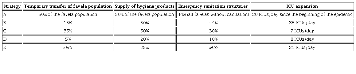 The policies suggested by the partner social movement were initially tested in the model independently to verify each isolate impact. Due to the results of these preliminary tests, we eliminated one policy proposal to which the model showed no support (ambulance routes in favelas). As all the other policies generated desired effects in the model, we proceeded to bundle them and analyze the effects of five strategies composed by different policy bundles, described in Table 2.