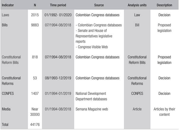 As we stated in the introduction, COL-PAP has its main motivation in the study of Colombian presidentialism and the role of the president in the public policy process. With that in mind, the six databases shown in Box 2 have been built, using a codebook adapted to Colombian institutionality, but following the central guidelines of the CAP. Next, we take account of the construction of the Colombian codebook, the databases and explain what the bills and CONPES consist of.