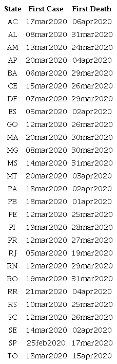 Barberia, L. G.; Moreira, N. P.; Cantarelli, L.; Claro, M. L.; Rosa, I S. C.; ... Aparecida, D. (2020a). COVID-19 Government Response Tracker for the Brazilian Federation (CGRT-BRFED). Retrieved from https://github.com/cgrtbrfed/covid19policytracker
