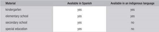 Although it seems that the Ministry of Education of Yucatan offers inclusive material for indigenous and non-indigenous students, the material is quantitatively different. For kindergarten there are 21 links in Spanish to support education, whereas there are only two links in the local indigenous languages that describe general activities for a week. For elementary school, 27 activities are available in Spanish and 10 activities are written in Mayan. As for middle school and special education, the material is available in Spanish only.