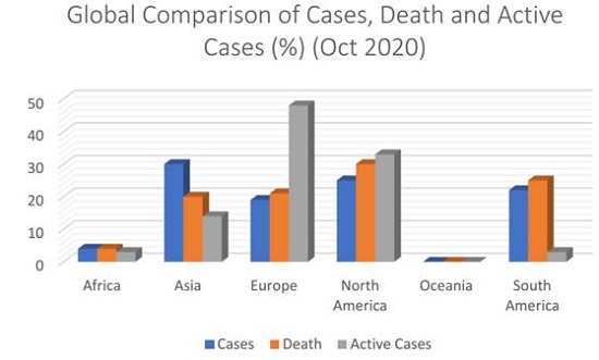 South Africa alone, has about 50 per cent of the cases as at July, but has reduced to about 40 per cent in October. South Africa case doesn’t compare with the rest of the continent and it is a clear outlier. Some commentators have argued that its case is best compare with South America than with Africa (Friedman, 2020). This is not peculiar to COVID-19 as Friedman (2020) argued that it is both an highlight of the deep historical inequalities and a reflection of leadership style that always aim to mirror the first world (Friedman, 2020).