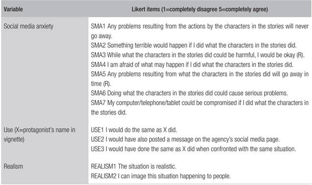 The use of vignettes in survey research has a number of advantages over more generic and abstract survey items like ‘I would use social media to speak up about public issues’. According to Steiner, Atzmüller and Su (2017), validity is increased as responses are embedded in a more concrete, realistic context; furthermore, impact of social desirability is limited (Steiner et al., 2017; Wallander, 2009). The vignettes are included in Appendix (BoxA).