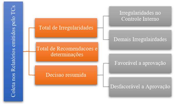 Considerando que esta pesquisa analisa fatores que influenciam em irregularidades na gestão municipal, o total encontrado foi a variável dependente utilizada. As demais informações, como irregularidades no controle interno, recomendações e determinações, bem como a decisão resumida, foram consideradas variáveis independentes (ver Figura 1).