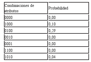 Como se muestra en la tabla 3, aquellas personas que no dominan ninguno de los atributos requeridos en el ítem 1, tienen una probabilidad de 0,89 de acertar dicho ítem. Por otra parte, quienes dominan solo el AT1 (utilización de métodos de factorización) tienen un 0,67 de probabilidad de acertar, mientras que quienes dominan solo el AT2 (revisión de opciones) tienen la certeza de éxito en este ítem; prácticamente la misma probabilidad en el caso de dominar ambos atributos.