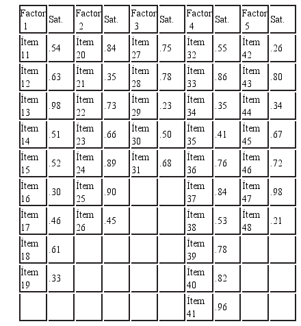 Finalmente, con objeto de agrupar los 48 ítems del cuestionario en diferentes categorías o dimensiones se realizó un análisis factorial exploratorio con máxima verosimilitud. Entre las salidas obtenidas se encuentra el índice KMO (Kaiser-Meyer-Olkin) que compara los coeficientes de correlación lineal con los coeficientes de correlación parcial. Si los coeficientes de correlación parcial entre las variables son muy pequeños, quiere decir que la relación entre cada par de las mismas se debe o puede ser explicada por el resto y por tanto se puede llevar a cabo un análisis factorial. Calculada la medida KMO, el resultado obtenido de .680, dentro del límite a partir del cuál el análisis factorial a realizar es adecuado y las conclusiones consistentes. Al desarrollar la prueba de esfericidad de Bartlett, se obtiene un p-valor de .000, lo que hace rechazar la hipótesis de que la matriz de correlaciones es una matriz de identidad, confirmándose una de las hipótesis de partida. El determinante de la matriz de correlaciones ofrece un valor muy bajo y muchas de estas correlaciones son significativas, apoyando la idea de que el análisis factorial es adecuado.