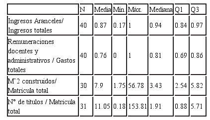 Sin embargo, existen también IP-s que difieren largamente de las cifras promedio. En algunos de ellos los aranceles constituyen el 50% o incluso menos del origen de los recursos, y en el caso de la disposición de infraestructura y recursos bibliográficos, se observan algunos que superan considerablemente los estándares del medio.