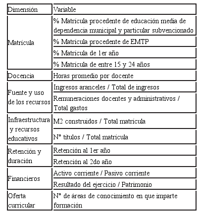 El análisis que sigue se centra en la situación de los IP-s actualmente vigentes en Chile. Los datos fueron recogidos desde el sistema de indicadores de instituciones de educación superior, “INDICES”, del CNED. Los indicadores disponibles para IP-s se encuentran clasificados en siete dimensiones.