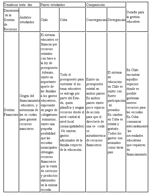 Gestión de recursos en los sistemas educacionales de Cuba y Chile