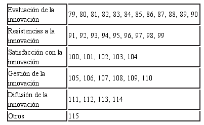 En resumen (ver figura 2), este análisis factorial, que definirá e influirá en la gestión de la innovación docente, ha permitido agrupar y disminuir el número de variables que definen una innovación, lo que resulta de utilidad por la compleja relación entre variables y su asociación.