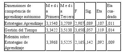 Cabe consignar que los estudiantes de tercer año, corresponden a la primera generación de estudiantes con Modelo Educativo basado en competencias, por lo que el hecho de que no existan diferencias significativas en las dimensiones propuestas puede atribuirse a las dificultades de una incipiente implementación del Modelo.