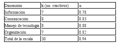 Los resultados obtenidos de la primera aplicación del instrumento se presentan en la tabla 2. En ningún caso se obtuvieron coeficientes menores a 0.70, lo que sugiere una adecuada fiabilidad de las puntuaciones. Es conveniente señalar que la fiabilidad comprende dos componentes, la consistencia interna, que refiere al grado en que los distintos ítems miden un mismo constructo, a lo que en Organista-Sandoval et al. (2017) fueron reportadas las evidencias de validez del cuestionario. El otro componente, de la estabilidad temporal, implica que el instrumento arroje el mismo resultado ante diversas aplicaciones a un objeto de estudio que se espera permanezca invariable. En este sentido no se cuenta con datos de una segunda aplicación que permita explorar la estabilidad temporal. Se advierte que, al abordar un tópico tecnológico, se espera que el objeto de estudio no permanezca invariable, en gran medida, por los frecuentes cambios y actualizaciones de la tecnología. Desde hace casi una década, UNESCO (2009) destacaba que la evolución en el tiempo de las TIC y de los indicadores asociados afectaría el desarrollo de instrumentos ya que deben ser sensible a este tipo de situaciones, por lo que el énfasis deberá dirigirse a la realización de estudios longitudinales especializados.