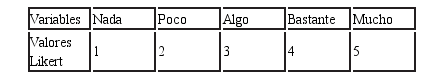 La información obtenida se procesó por medio de una escala tipo Likert. Los valores se señalan en la tabla 1. Se trabajó por medio de porcentajes. Para conseguir el promedio y porcentaje en cada respuesta se aplicó un procedimiento estadístico simple y sobre este dato se realizó el análisis cualitativo.
