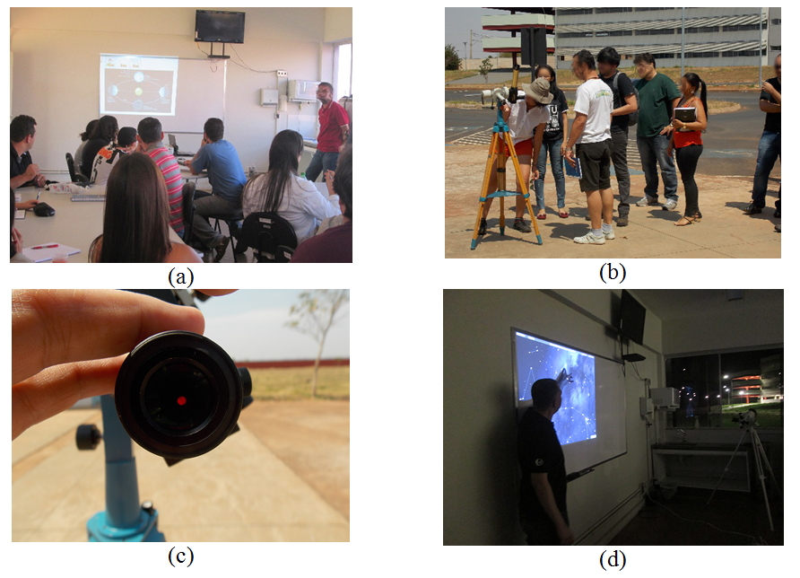 Se realizaron 6 encuentros temáticos: (i) la astronomía y la astrofísica de manera general (las estaciones del año, las fases de la Luna, las distancias astronómicas y los movimientos de la Tierra); (ii) el Sol y sus estructuras (núcleo, la fotosfera y cromosfera y corona, rotación diferencial, manchas solares, campo magnético), la diversidad de las estrellas, (los colores y tamaños), galaxias y cosmología; (iii) construcción de actividades prácticas-experimentales con materiales de bajo costo (heliodón y reloj de Sol, espectroscopio de aficionados); (iv) Espectroscopia y visualización del Sol a través de un telescopio con filtro H-α (h-alfa), software Stellarium; (v) observaciones diurna y nocturna del cielo (formas de observar el Sol, identificación de las constelaciones como la Cruz del Sur, de Orión, puntos cardinales y "dibujos" de constelaciones); Astronomía en la Educación Básica brasileña; (vi) Astronomía desde los antiguos egipcios hasta los días de hoy; animaciones en stop-motion y creación de animaciones en Astronomía; Applets; Física Moderna y radiación del cuerpo negro y actividad práctica-experimental: determinación de la temperatura de la fotosfera solar.