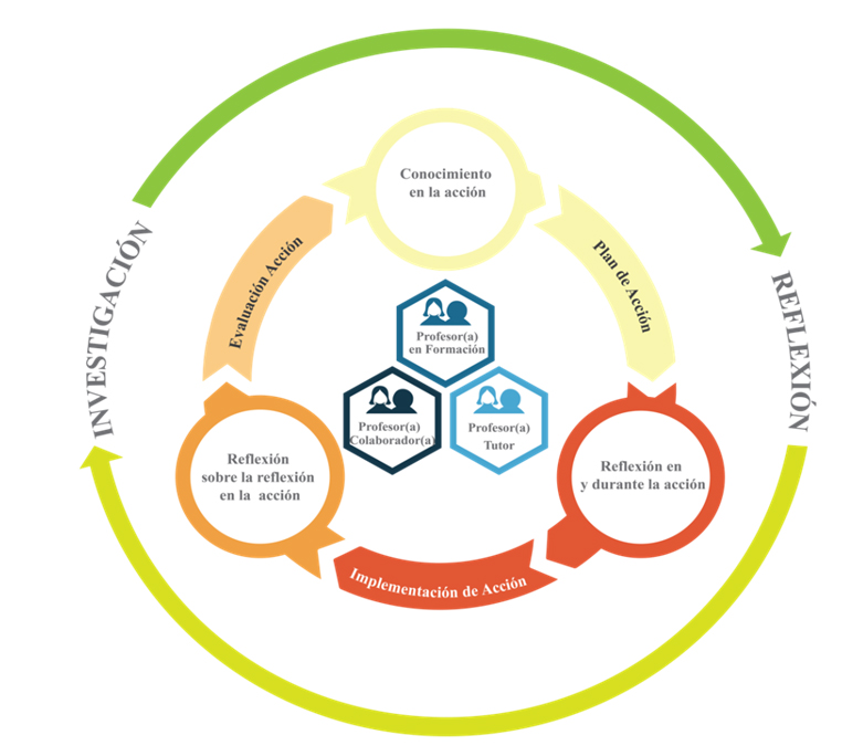 Con todo lo anteriormente expuesto, el modelo formativo-reflexivo a operar bajo el eje de práctica de la FID, incorpora, de manera simultánea, el enfoque metodológico de la investigación-acción propuesta por Kemmis y McTaggart (1992), y el modelo de práctica reflexiva de Schön (1998). Dicho modelo se configura en una estrategia de innovación y mejora continua para la FID, los cuales a través de una mirada teórica-crítica-práctica y sobre todo reflexiva, buscan aportar al desarrollo del Sistema Educativo.