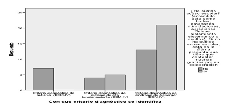 Las características inherentes al desarrollo y a la competencia social de las personas con TEA, principalmente el de aquellas que se encuentran en el polo superior del espectro, las convierte en alumnado vulnerable en el periodo escolar, el cual comprende el inicio de la Educación Primaria y la finalización de la Educación Secundaria, pues queda patente como los participantes diagnosticados de TEA 1 (DSM-5) o síndrome de Asperger (DSM-IV-TR), y TEA 2 (DSM-5) o Autismo de Alto Funcionamiento (DSM-IV-TR), están más expuestos a sufrir acoso escolar frente a las personas diagnosticadas de TEA nivel 3 (DSM-5) o autismo (DSM-IV-TR), las cuales suelen estar escolarizadas en aulas específicas o centros específicos, aspecto que reduce las posibilidades de que sean objeto de acoso escolar.