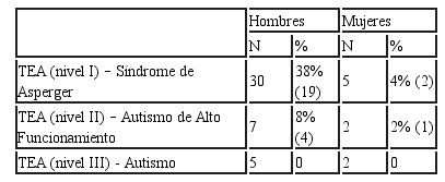 Esta prevalencia apoya el estudio de Wilkinson (2008), en el que los varones con síndrome de Asperger (TEA Nivel 1) se identifican con el diagnóstico en una proporción de 10:1 frente a las mujeres, es decir, el desarrollo social y lingüístico de las mujeres con síndrome de Asperger (TEA nivel 1) les permite mostrar una identidad que no se corresponde con el patrón y características “clásicas” del síndrome de Asperger, y por ello no ser diagnosticadas y/o pasar desapercibidas.