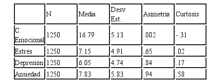 Respecto de las características de confiabilidad de los instrumentos puede señalarse que ambos instrumentos presentan para esta muestra valores de confiabilidad general adecuados. La escala de conciencia emocional presenta un alfa de Cronbach de .774, manteniendo sus diez ítems, mientras que el DASS 21, presenta un alfa de .915. Es decir, ambos instrumentos son confiables.