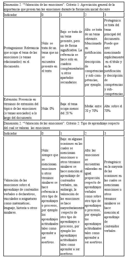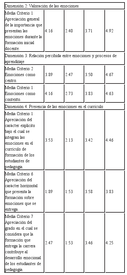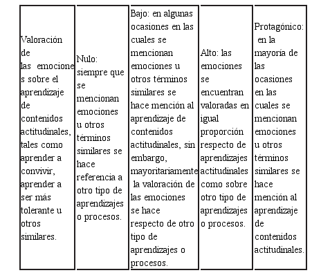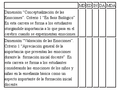 Consiste en la apreciación respecto del valor que se asigna a las emociones en la formación inicial docente, así como el modo bajo el cual se produce esta valoración. Los criterios asociados son los siguientes: