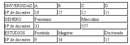 Respecto de la muestra de docentes formadores de docentes, al igual que en el caso anterior, se invitó a participar a todos(as) los docentes de las universidades, obteniéndose una respuesta positiva del 51,28% (60 personas), de un total de 117 DFD. La Tabla 2 muestra la distribución de la muestra de docentes universitarios según universidad de pertenencia, género y nivel de estudios.