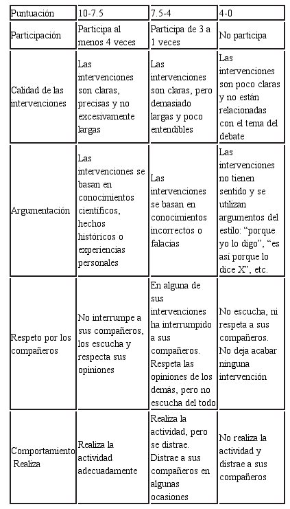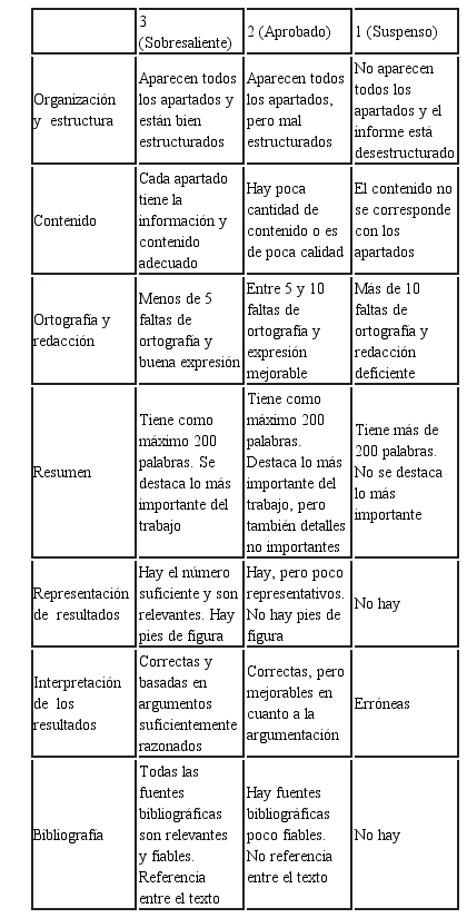 La evaluación de la unidad fue de carácter continuo. La unidad didáctica se consideró aprobada cuando el alumno adquirió los conocimientos mínimos de la asignatura que marca la legislación (Decret de les Illes Balears 34/2015) y las competencias necesarias para redactar el artículo científico, elaborar el cuaderno y participar en los debates de bioética con una visión crítica, lógica y respetuosa con los demás. El artículo científico suponía un 70% de la nota final, el cuaderno de laboratorio un 20% y los debates sobre bioética un 10%. Estas actividades se evaluaron mediante la utilización de diferentes rúbricas (tablas 1-3).