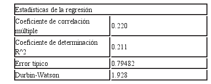 En la tabla 5 se aprecia un coeficiente de determinación R2 de 0.211. El grado en el que el modelo explica el comportamiento del factor dependiente con respecto a los independientes es de 21%. Con el valor arrojado podemos afirmar que el modelo es confiable. Se entiende que la propensión de deserción escolar entre los alumnos activos del CBM aumentará o disminuirá según la pobreza que viven, la necesidad de apoyar económicamente a la familia, lo que aporta su preparación académica para lograr el éxito social del estudiante y la distancia entre el hogar y el plantel de CBM.