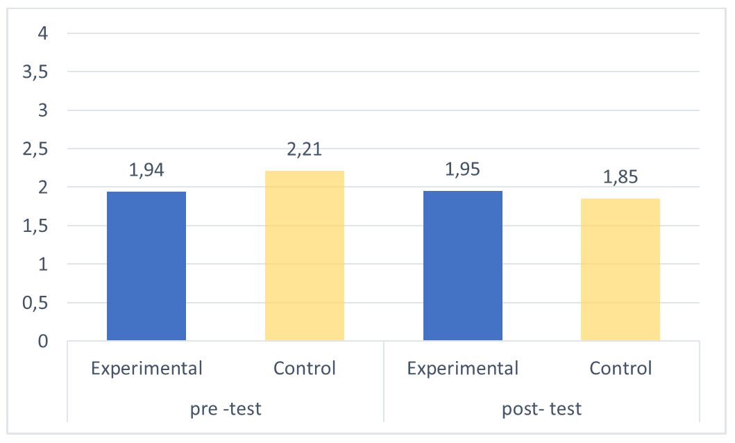 Los resultados del pre- test no evidencian diferencias significativas entre el grupo control y experimental, en el número de palabras recuperadas de la tarea de recuerdo serial (valor-p = .9762). Ello demuestra que ambos grupos estaban en igualdad de condiciones antes del tratamiento.