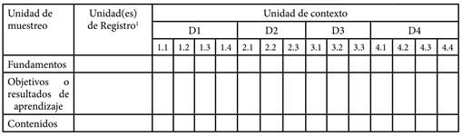 Las unidades de muestreo corresponden a aquellas porciones de la realidad que se consideran independientes entre sí o, dicho de otro modo, son las partes del documento que analizaremos de manera individual. En el caso de los programas de asignaturas TIC en FID, se consideraron tres unidades de muestreo, las que eran compartidas por todos los programas: i) fundamentos de la asignatura; ii) objetivos o resultados de aprendizajes y iii) contenidos (conceptuales, procedimentales y actitudinales).