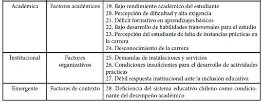 A continuación, se describen las subcategorías identificadas, en términos de factores asociados a la deserción: