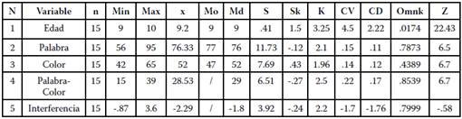 De acuerdo a Martín et al. (2012) se tiene evidencia de que la capacidad de resistir la interferencia ejercida por la lectura parece inmutable entre los 7 años y medio y los 11 años 4 meses. De igual manera, Rognoni et al. (2013) sustenta que no existen efectos significativos en los resultados del Test de Stroop respecto a la edad y al sexo de los sujetos, salvo en individuos a partir de 50 años en adelante y niños en etapa pre-lectora.