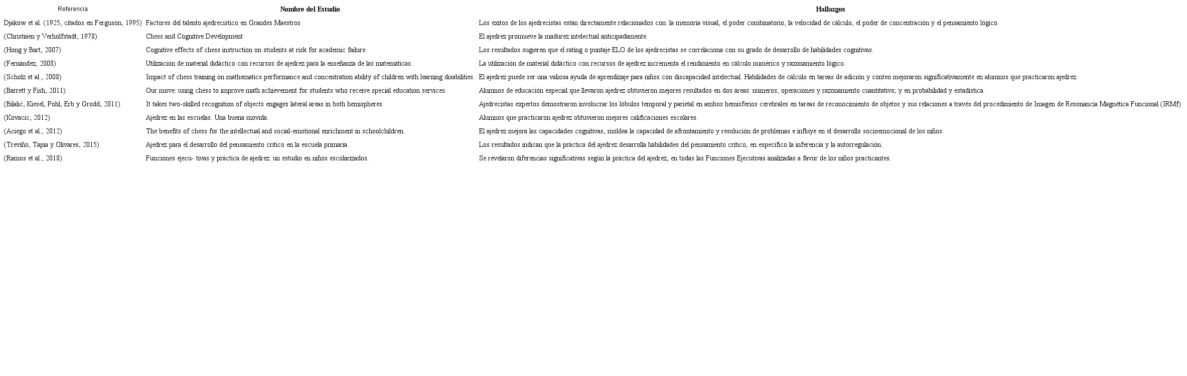 A continuación, en la Tabla 1 se hace un recorrido cronológico de algunas de las principales investigaciones que relacionan al ajedrez con la educación.