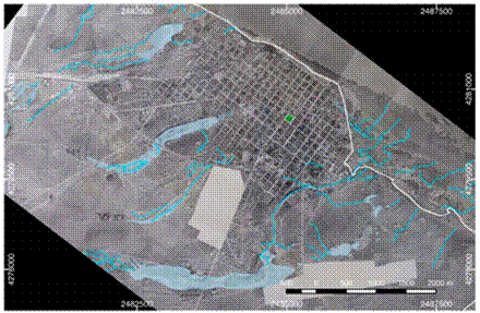 El análisis de fotografías aéreas tomadas en la década del 60´ (Figura3) posibilitaron la lectura y análisis de la geomorfología en la que se implanta la ciudad de Río Gallegos, compuesta por antiguos canales de marea que determinan el sistema hídrico natural, facilitando responder las interrogantes sobre por qué se anega y corroborando que el crecimiento de la mancha urbana obstruyó el escurrimiento natural de agua hacia el estuario.