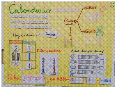 Todos los días, a partir del orden de lista, cada uno de los niños, con el apoyo del docente y del resto de compañeros, deberá seguir las indicaciones y completar el panel ABN que se ha elaborado para la asamblea matemática de cada día. Dura en torno a 5-10 minutos siguiendo la intervención en el aula a partir del siguiente orden de cuestiones: