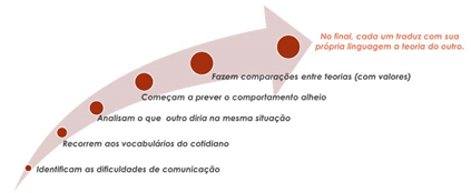 Mas essa tradução não pode ser entendida estrita e literalmente. Antes, deve-se pensar que esse processo propicia bilingues, e não tradutores comuns (Mendonça & Videira, 2007). Isto quer dizer que os estudiosos aprendem a nova teoria a partir de seus próprios termos; há uma modificação na linguagem.